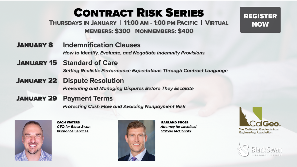 2023 Write Right Seminar with John Bachner Advanced Slope Stability with Chris Kelln (6 hours) DETAILS (Software Trial Not Included with Recording Purchase) Slope Stability with Dr. Timothy Stark (6 hours) 2022 Loss Prevention Seminar (4 hours)